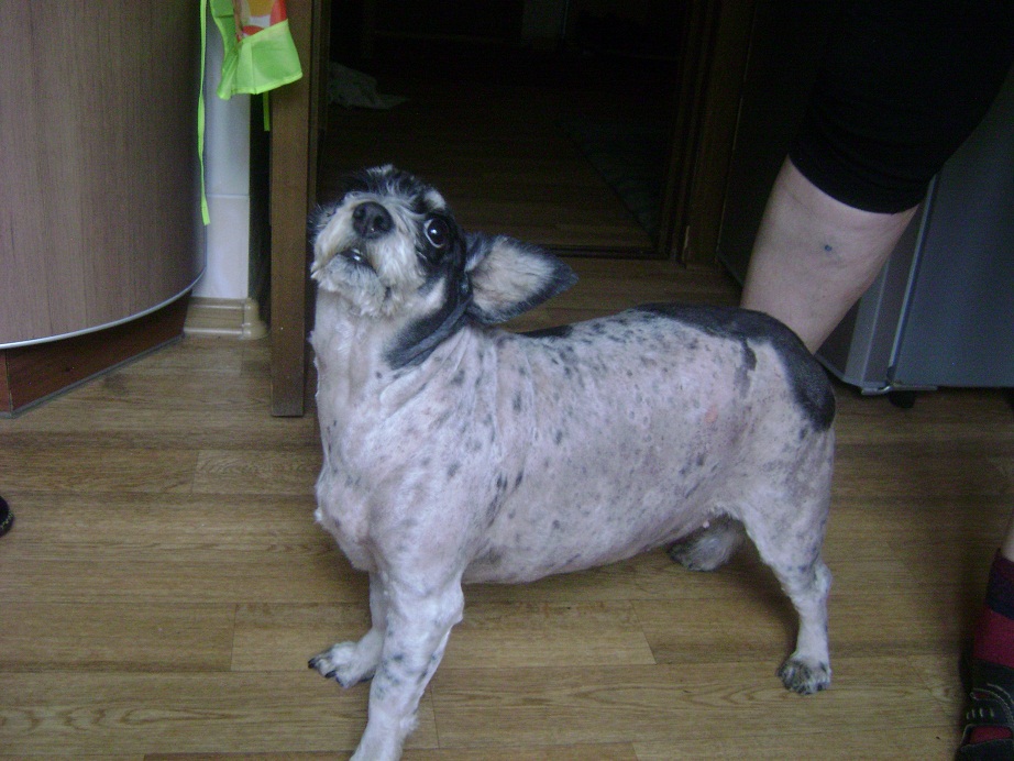 Мне кажется, прищурив один глаз, что можно давать объявление на "Русская цветная болонка" породная, документы о чистопородном происхождении утрачены и тд. Посмотреть пузо. На нем наверняка есть клеймо. Давать объявление с двумя фото - породное животное в обросе, ну и это чудушко. Я сейчас в инете поишу что-нибудь подходящее. Кто посмотрит пузо?