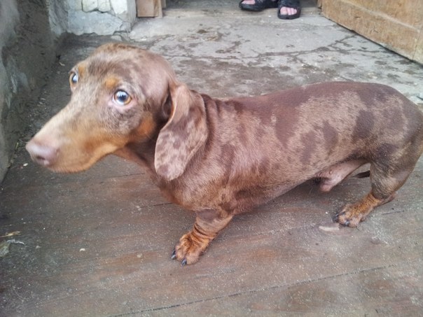 Во дворе 28ого дома по ул. Луначарского мёрзнет такс-потеряшка. Напуган, в руки не даётся. Заманили в подъезд. Кто ищет?