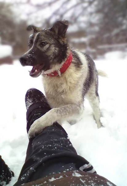 Пропала собака!18 марта,в районе белого дома,пропал мой друг-пёс Байрон.На вид ему около года,бело-серо-черный.На нём был красный ошейник.По словам свидетелей он мог побежать в сторону красного креста или рынка.Пожалуйста,если вы владеете како-либо информацией сообщите мне пожалуйста по телефону 8 904 036 24 62