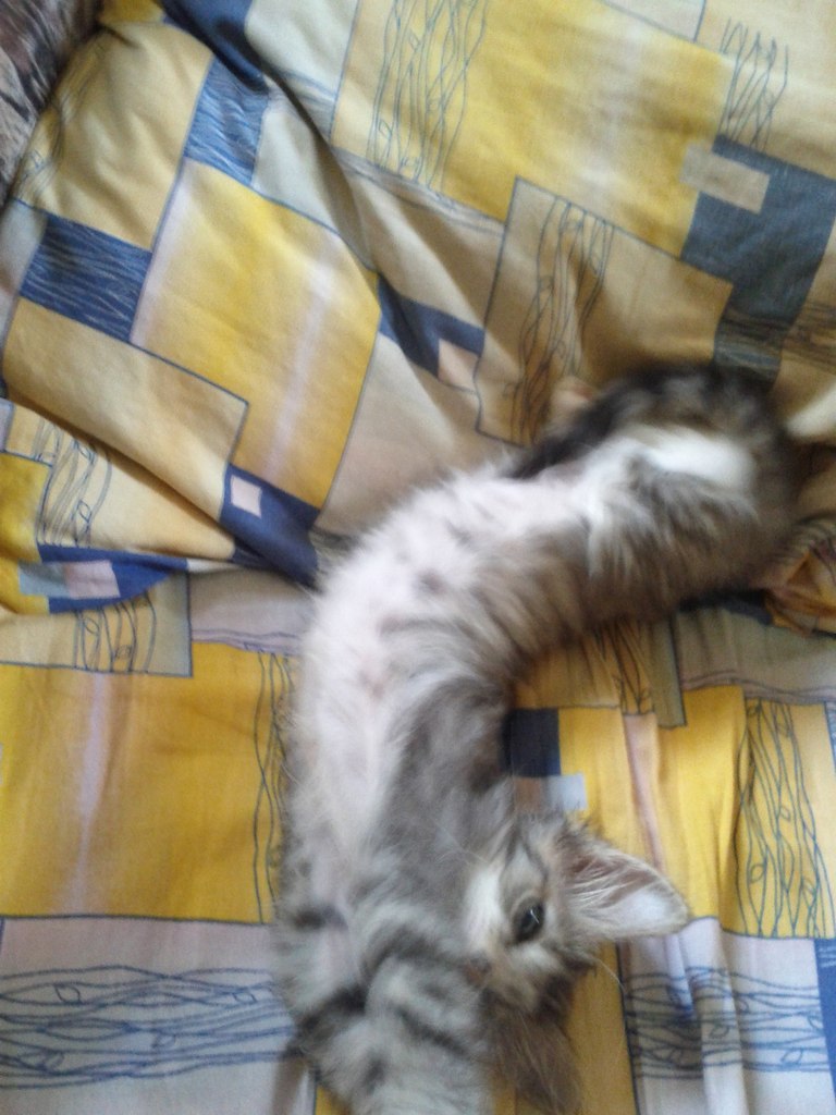 Серенькая поживает хорошо, очень активная, постоянно играет, прыгает по диванам и подоконникам, все верха облазила, с туалетом напряг вышел, но думаю с ней договорились и пришли к компромиссу)) днем когда на работе, что то не особо ест, хотя знает где еда, но все еще пугливая на каждый шорох, очень мурчащая))