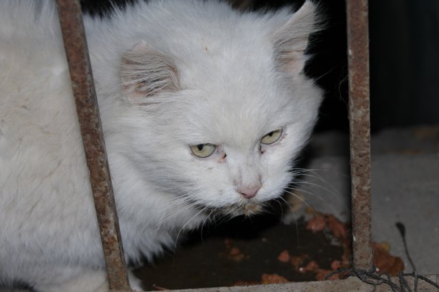 зато нашли другую компанию, думаю кот и кошка в нашем подвале. Белый скорее всего кот (честно даже забыла посмотреть), с виду скорее всего старый, а может побитый жизнью, ушки обморожены, вроде и толстый, но хребет прощупывается, ручной!!