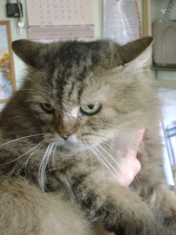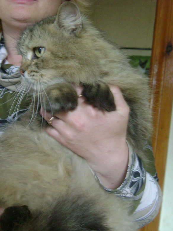 Сегодня в приют из Доброго принесли еще кошку пушистую, похожа на сибирскую 2года, ласковая, посадили в офис на стерилизацию, после стерилизации только в приют, мест в гостинице нет.