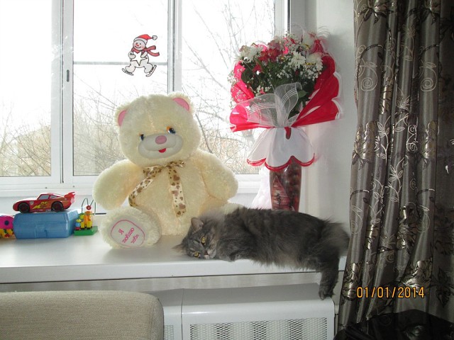 Ведь я сама запись активировала прошлую. Там фото было очень странное. На поллиста цветы, подарки и где-то в углу кошка. Кошку сразу увеличила тогда во весь экран на фото и в текст добавила.