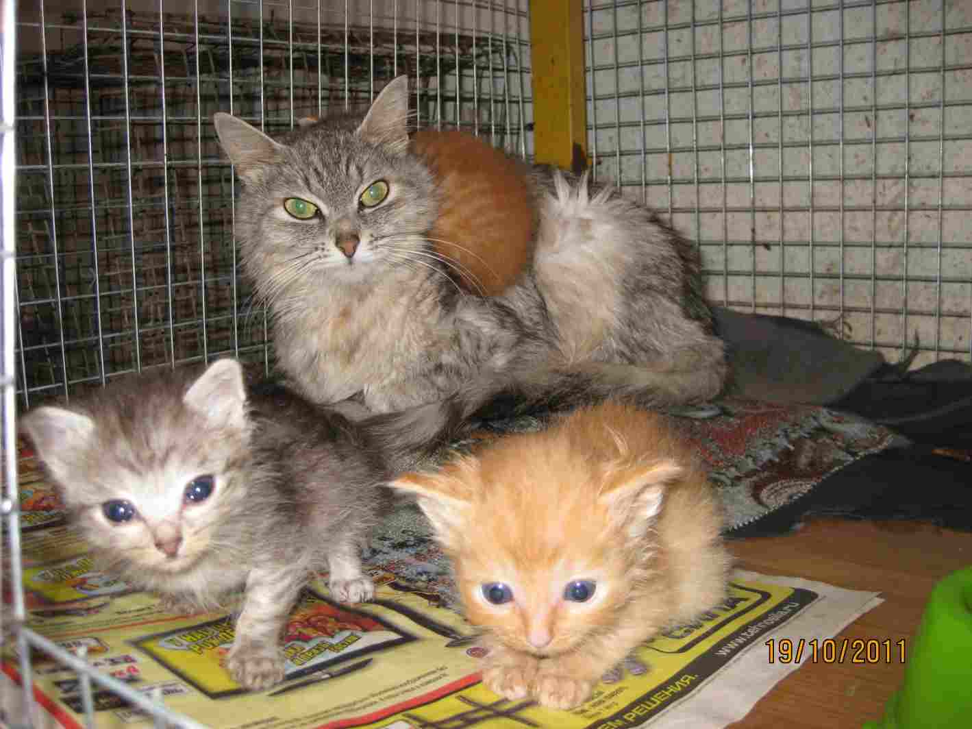 возраст 1, 5 месяца. серый мальчик, рыжие мальчик и девочка