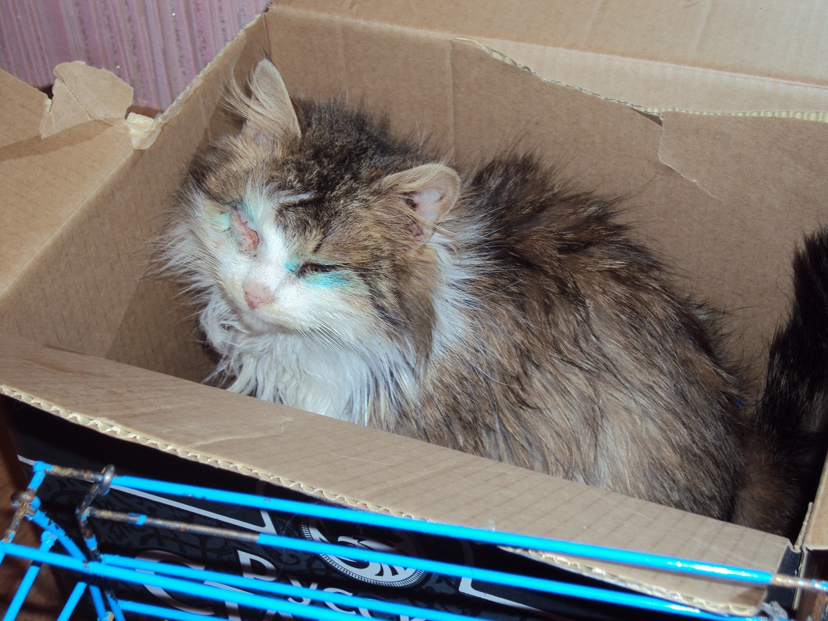 11 февраля были на приеме у терапевта. Кошку осмотрели, посветили, посмотрили ушки, носик, шерстку, ротик. Выявили, что инфекций, лишая, блох и клеща нет. Пощупали животик. Сказали, что надо лечить кишечник и правильно кормить. Выписали смекту и ветом 1,1. Потом мы пошли к офтальмологу. Она посмотрела ей глазки. На вопрос, будет ли она видеть правым глазиком, ответила,что об этом говорить рано, посмотрим на результаты лечения. Ей сделали анастезию и вкололи 2 укола в глазки. Замазали зеленкой. Сказали, что перед тем как мазать каждый раз надо мыть глазки и тщательно промывать фурацелином с водой. Так же выписали мед.препараты,наименования,фото чеков и назначений выложем позже. Кошечка на передержке с мед.уходом до 16 февраля, т.к.17 февраля девушке-передержке нужно уезжать. Лечение начато. В четверг следующий визит к глазному.