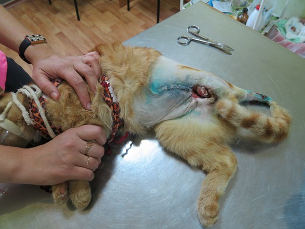 " Состояние Рыжика удовлетворительное.Он очень активный,любознательный.Сегодня была последняя очищающая перевязка перед завтрашней операцией.Надеюсь все будет нормально и Рыжика завтра прооперируют."