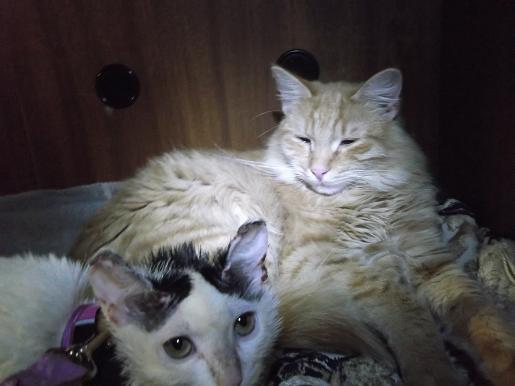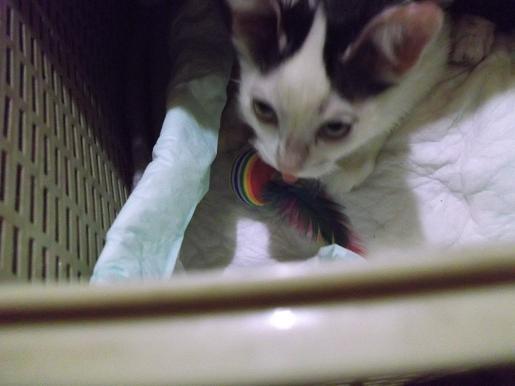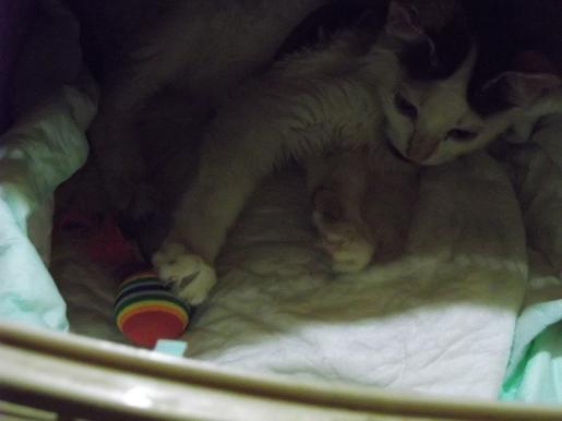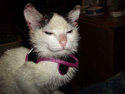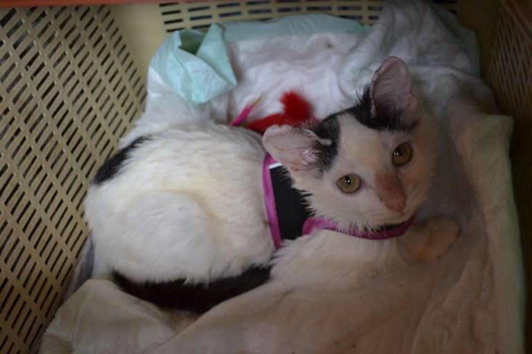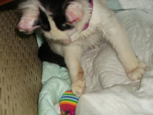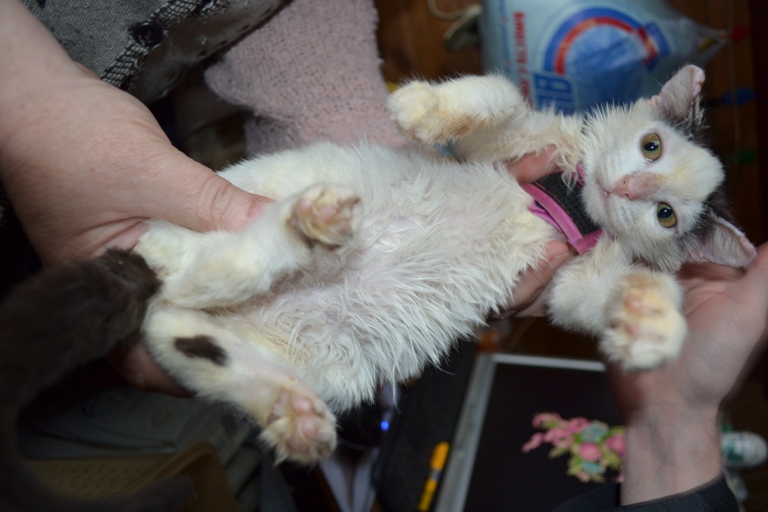 Сегодня я разговаривал с Ириной, у них все хорошо. Ринотрахеит быстро прошел, лапки зажили почти, ушки заживают, кошки и собаки Мию приняли хорошо. Сейчас Мия уже обычный кошкоребенок – бегает, играет, достает и кошек, и собак, все ей интересно.
