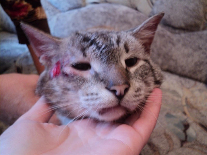 мама говорит,что теперь он хотя бы на кота стал похож,я потом ещё выложу фото,есть готов постоянно,ходит орёт,голос противный,поэтому иногда у нас с домашними конфликт(если б молчал то было бы лучше)))мама сказала пока долечивается пусть будет у нас,чтобы в клетку не сажали,но надо думать