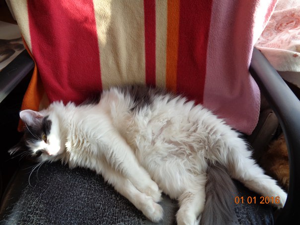 Всем большое спасибо,Кузя уже лёг спать,спит с нами на диване на своём пледе.