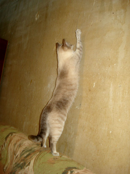 Чуча как существо с другой планеты, я ей говорю: "Всех нормальоных кошек аист приносит, все мягонькие и пушистенькие , а тебя видимо при перелете планетой ошиблись. Или при передаче попутали чего