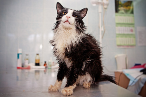 Очень жалко, что Антон скинул только одно фото уже просохшего Лео. Столько дублей было! На фото от грозен очень. На самом деле - душечка, с улыбкой.