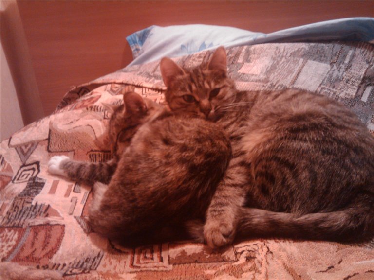Злата уж больно ее полюбила, Из всех кошек, только Тоша ее не боится, бегает у нее под ногами, может лапами по носу дать, а Златка рада, хвостом виляет, лижет ее, только я боюсь не придавила бы она малявку уж больно она вертлявая и подногамипутающаяся