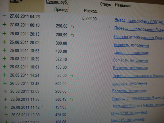 27.08.2011 00:18 250,00 Перевод от пользователя Яндекс.Денег