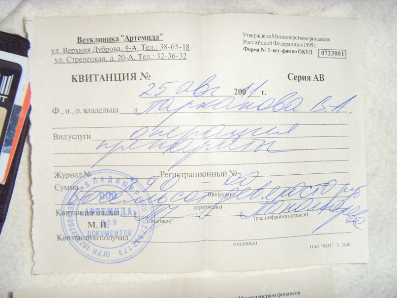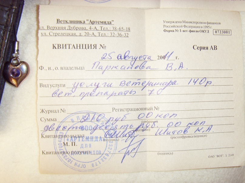 отчетность и предписания по лечению также доступны в альбоме Ларсика - http://vkontakte.ru/album13726699_141567552