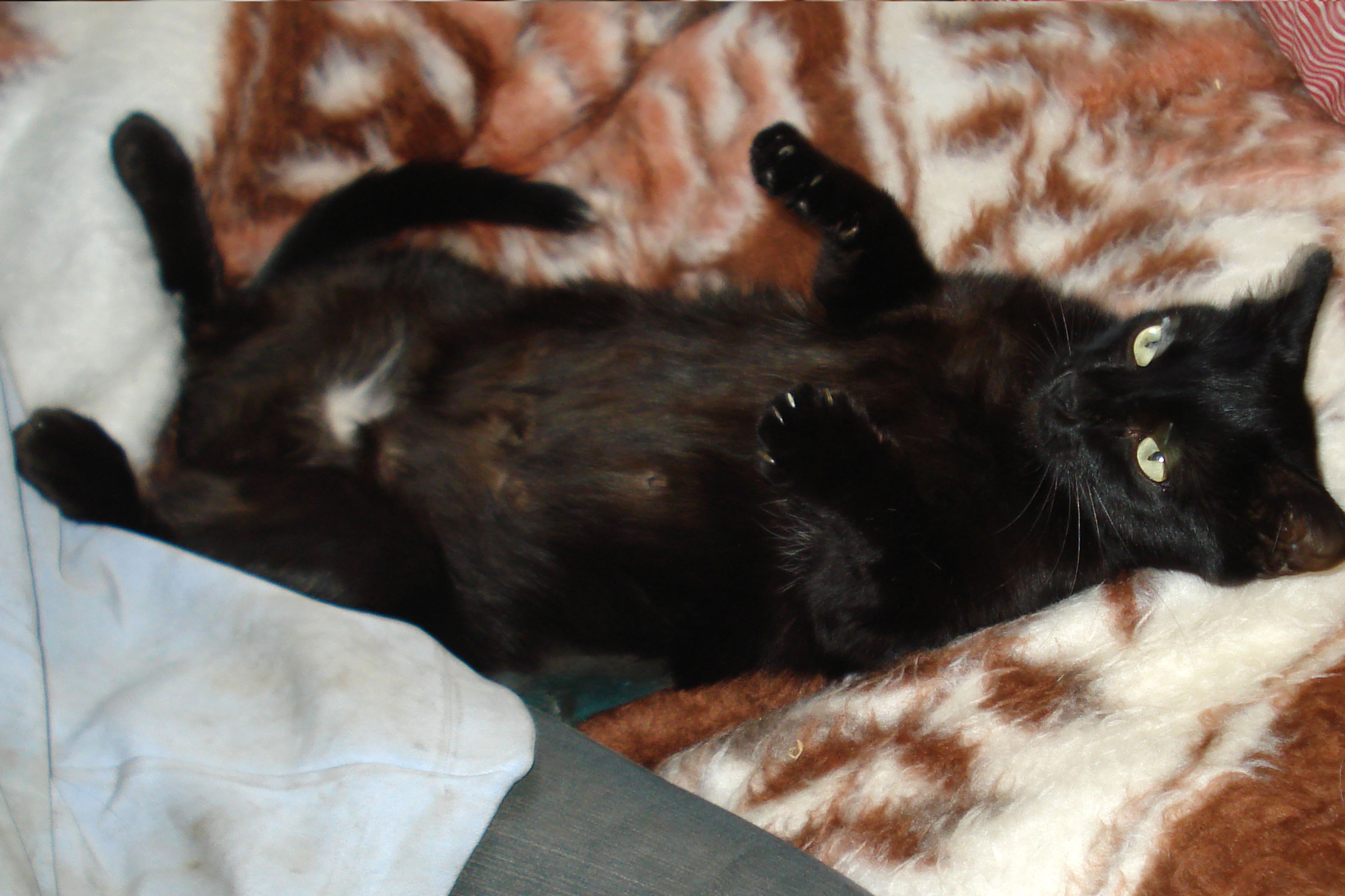 Моя Муся приютовская тоже в детской кроватке спать любит))) Доча чуть не на подушке всем тельцем спит, а Мусена кверху пузом похрапывает. Выгоняю, так она через форточку обратно, и утром здрасьте вам))))))))))