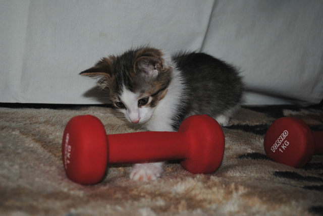 Красивых фото не вышло, поэтому прошу закинуть опять с гантельками - он там еще менее лопоух!