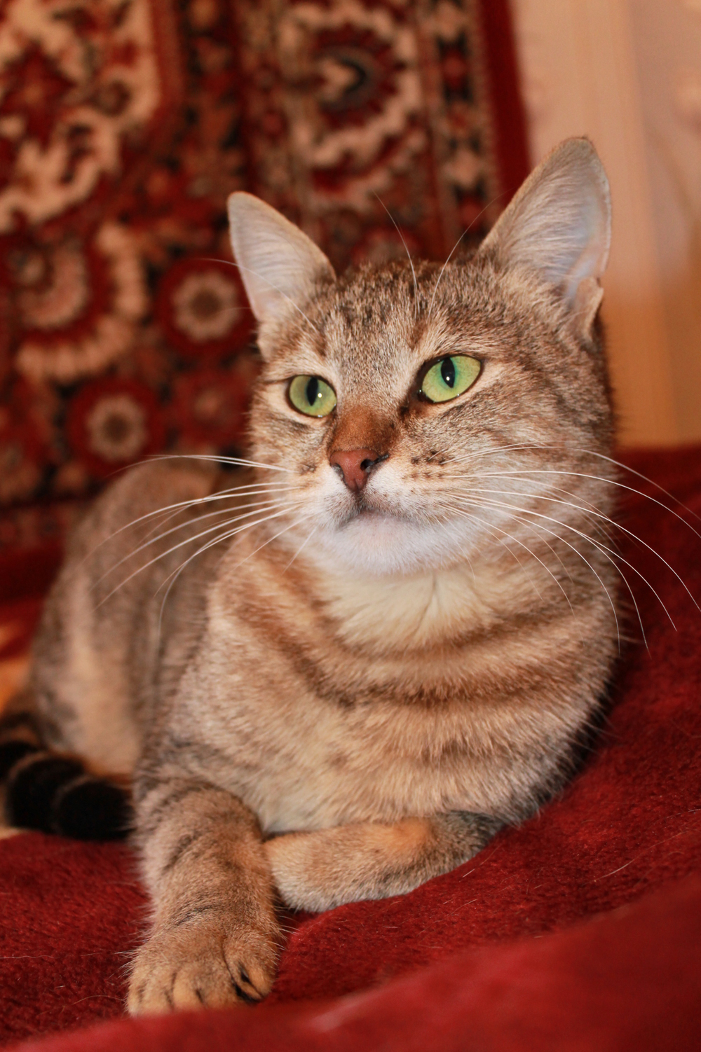 Отдаю только в добрые руки кошку Мусю, 2 года - трёхцветно-полосатую девушку с блестящей гладкой шкуркой и красивыми зелеными глазами. Если вы ищете себе мурчащую подругу, то Муся подойдет Вам идеально: спокойный характер; ласковая; готова постоянно мурчать, если будете ее гладить; чистоплотная (ходит в 2 лоточка); немного стеснительная - молча просит еду, глядя в глаза. Муся каждый день ждет своего любящего хозяина у окошечка.