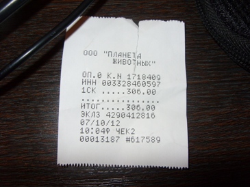 так как деньги были даны на этого котика дублирую чеки на щенка и тут 600 - 188 = 412 Завтра едем в клинику
