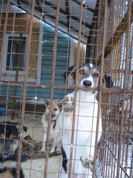 уезжатть стали, в вальере сидит щен - метис гончей (из пристроенных) :(