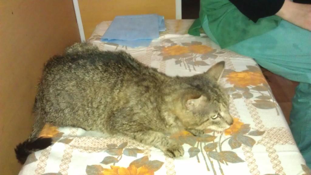 Сегодня была в Атланте Бурзик выздоравливает, кот очень большой, если его откормить, думаю кг на 8 будет, хорошо бы его в частный дом мышей ловить, очень ласковый, прошу помочь с пиаром с сетях и тп