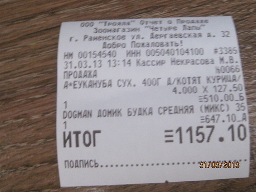 купила в чеках-корм сухой для котят Флатозор(400гр)