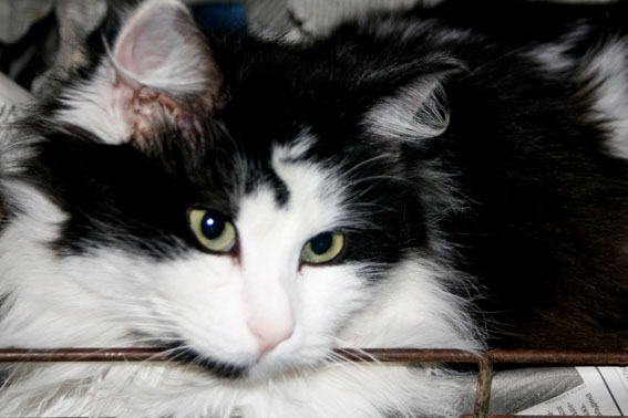 Кот красавный, он такой спокойный, как удав. Они с подругой в клетке вместе сидят мордаха к мордахе.
