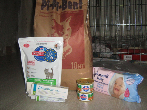 Корм и наполнитель нам привезли, отдала 540 рублей. Чеки не получается сфоткать, надо сканировать. То засвечиваются, без вспышки - размыто. За мазь отдала 167,30 руб.