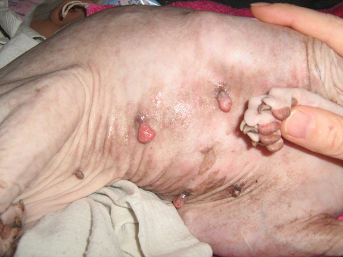 У кошки не обморожены соски. У дончаков бывает разрастание соска. Выглядят тогда соски, как большие папиломы: на тонюсенькой ножке большая дуля. Не надо их мазать. Об этом можно почитать: http://www.mysphinx.ru/page/giperplazija-soskov Удаляют соски, когда они очень здоровые У Вашей они почти в норме.