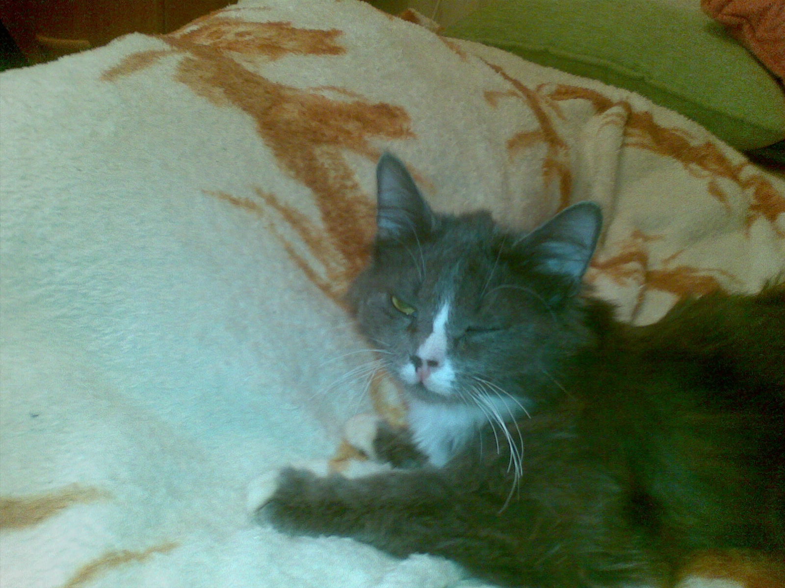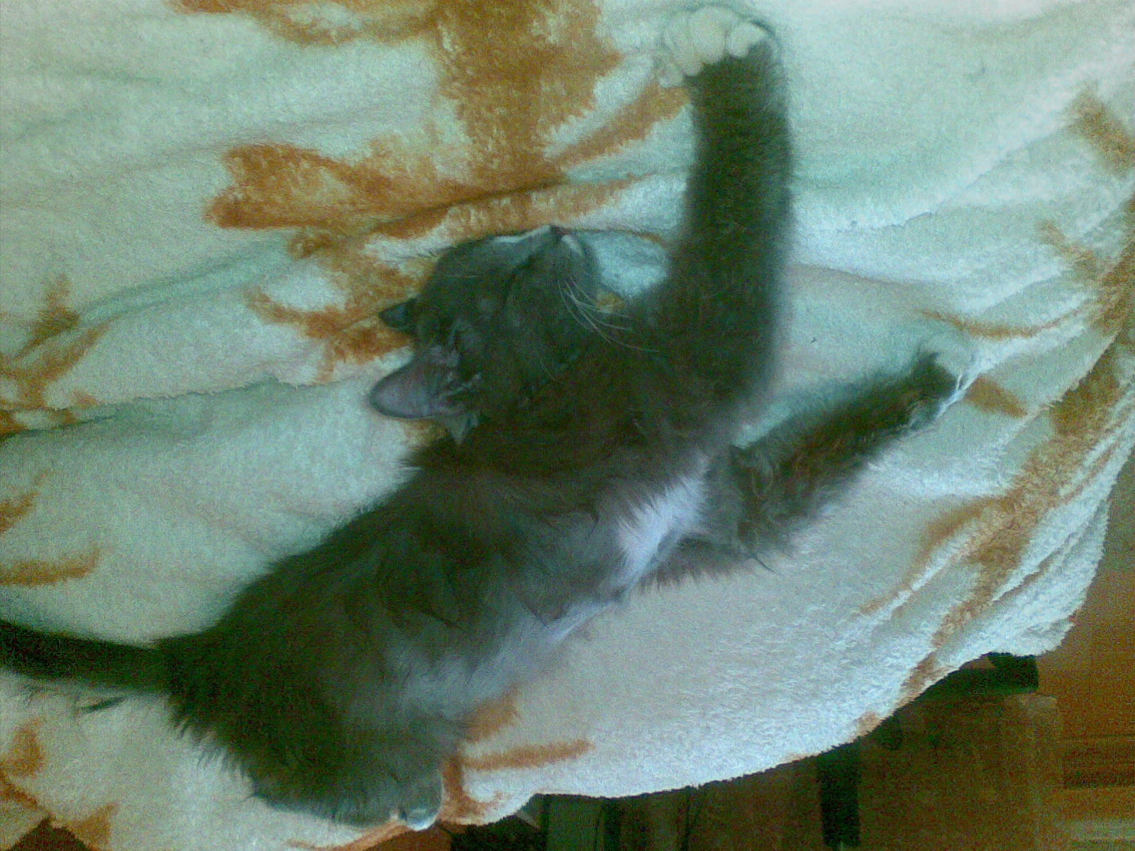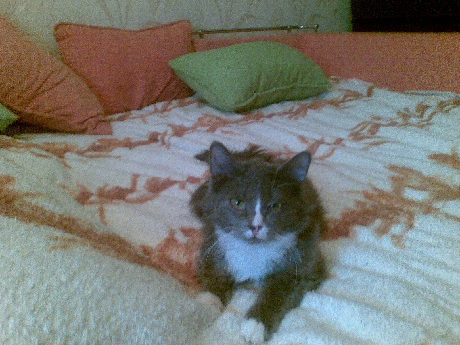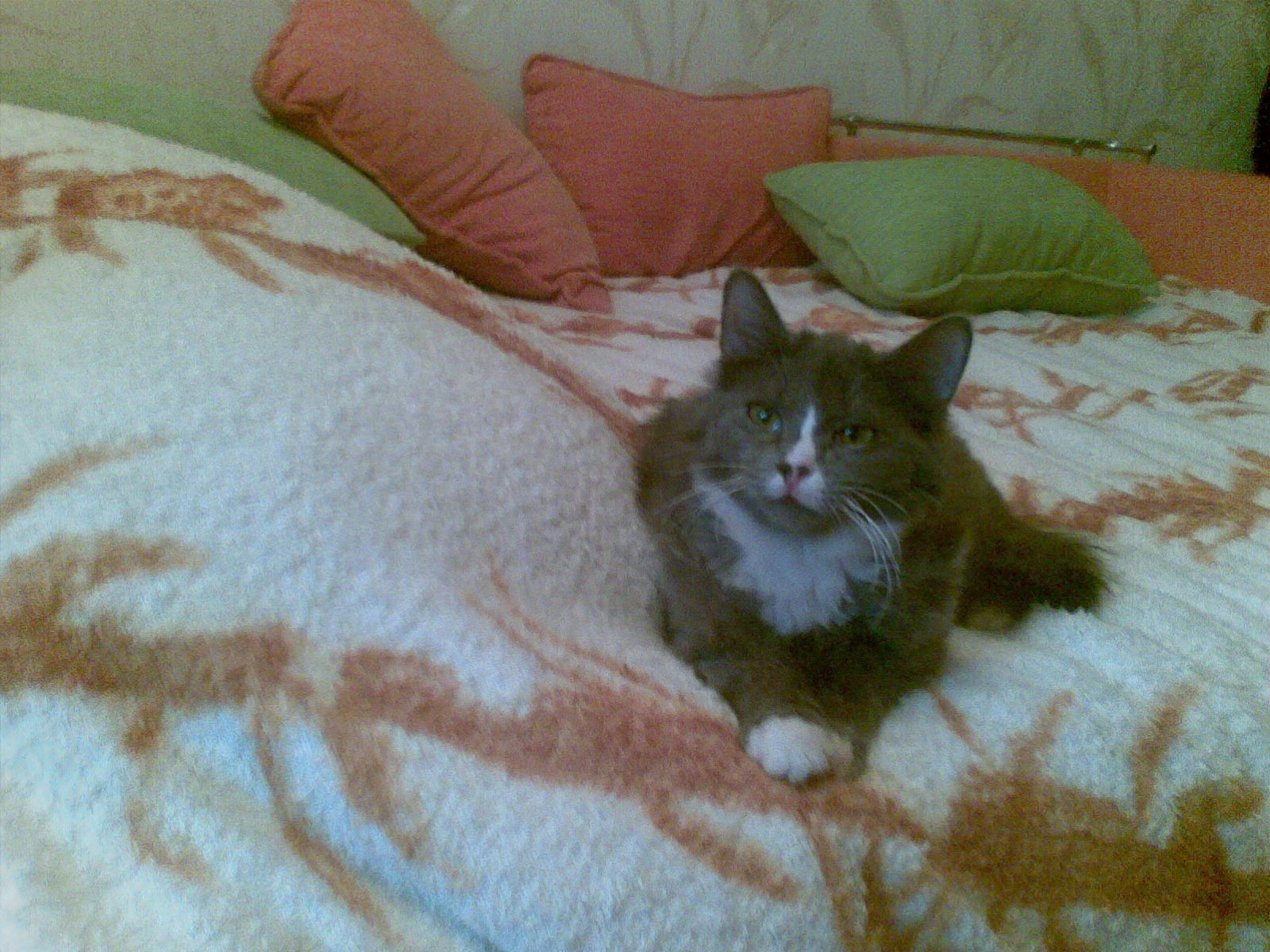 кошку любит, мутозит ее по страшному, она тоже его любит, а вот папа просит побыстрее пристроить((( а он облезлый и шерстью не обрастает , хотя уже выздоровле и кушает отменно(