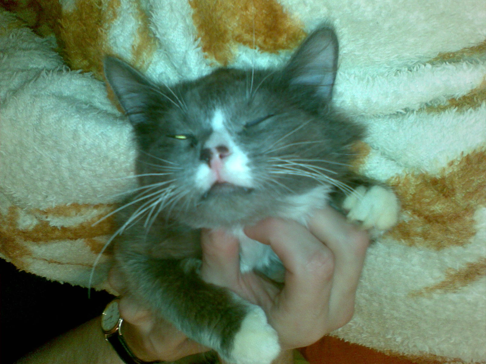 кошка и котенок пошли на поправку! глазки текут, но уже как слезки. гноя вообще нет! чихают очень редко!