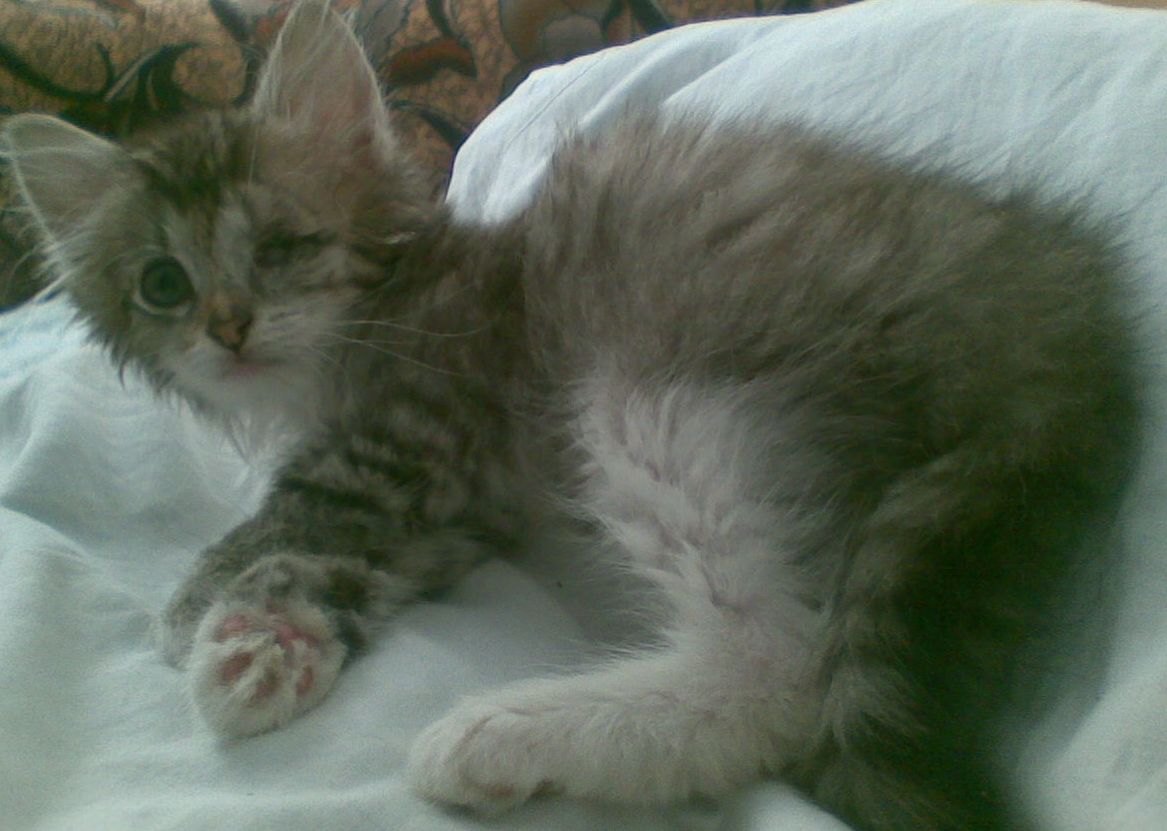 Всем,кто писал мне в личку-ответила!=) Напоминаю,что серая девочка на передержке, вопрос ДОМА и ХОЗЯИНА остается АКТУАЛЬНЫМ и РЕШАЮЩИМ!!! Девочка замечательная,поспокойней братика(тот у нас,как мы выяснили,рубаха-парень со "звёздными" замашками и театральными талантами) Девочка более пугливая,но не менее ласковая,просто она к новому человеку должна привыкнуть! Ко мне вот за 2 недели привязалась! А ведь её только Я и колола,больно делала... А она от меня сейчас не отходит! Присяду,она тут же ко мне забирается, на колени или рядом укладывается,либо трется об руку,спину,урчит много! Такая пуська, такая смешная,милая и забавная,такой пушистый кубарик,это чудо! Так смешно наблюдать за ней! Пушистое взъерошенное чудо! Ручки мне лижет,прямо слёзы! Любит лежать рядом с человеком,чтоб тепло родное было! В общем, всё про неё сказано в стишке,который я про неё написала ранее... ВОЗЬМИТЕ !..