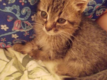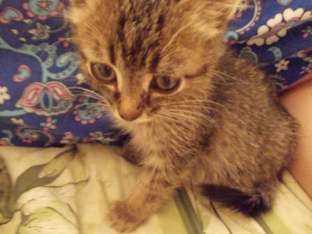 Я вчера видела этого котенка. На фото он выглядит большим. На самом деле умещается на ладошке.