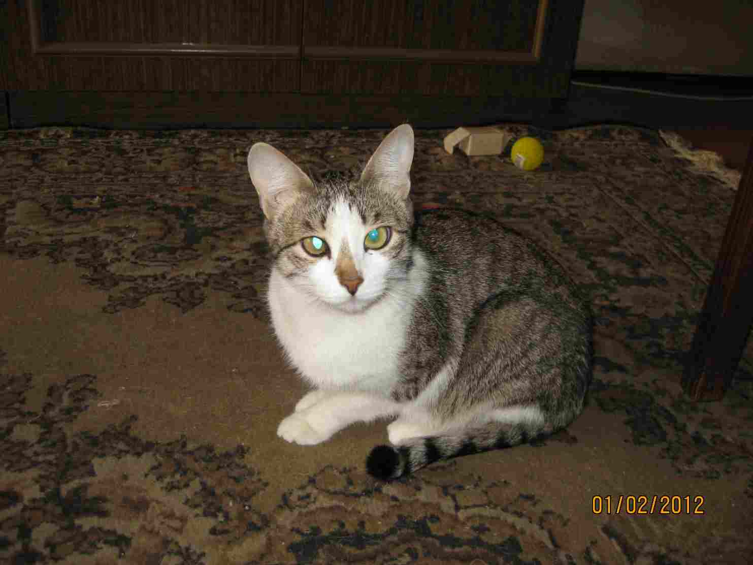 Кошка, как я поняла, полосатая, обычная, (молодая).