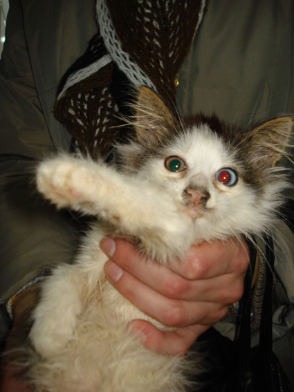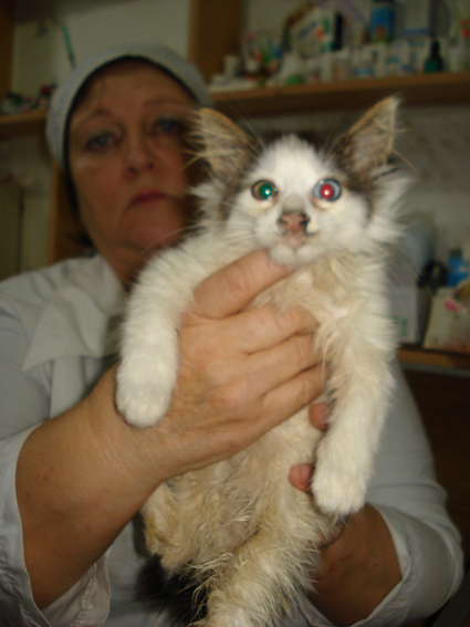 Усыплять в приюте никто есст. не стал. Котенок Сильвер, мальчик. Возраст где-то 2,5 месяца. Глаза разного цвета. Очень трогательный кисеныш. Возможно крыса отгрызла лапу. Сейчас готовят к ампутации.