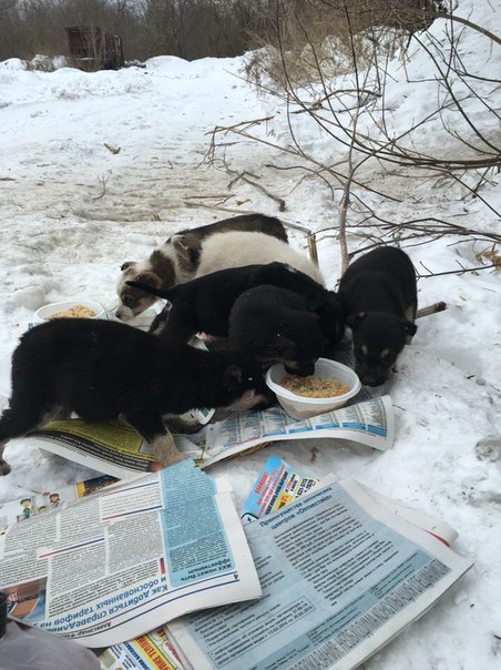 Совсем недавно и по счастливой случайности были найдены щенки в пром.зоне железной дороги, где нога человека вступает крайне редко. Они были совсем малюсенькие, 5-6 недель, очень промерзшие и очень голодненькие. Жили под плитой на холодной земле.