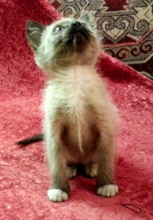 Пристраивается котенок 2 месяцев, мальчик, сиамского окраса,очень умный и ласковый. В еде не прихотлив, к лотку приучен (даже без песка). Гусь-Хрустальный, Татьяна, 89209200267