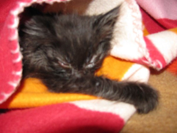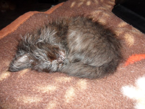 Вчера малютку обнаружили в подъезде. Очень худой, буквально кожа да кости..(пушистый, поэтому сразу худобу не заметно). Гноятся глаза и сопли. Сейчас откармливаем смесью для недоношенных детей, промываем глазки и ИЩЕМ НОВУЮ СЕМЬЮ!!!