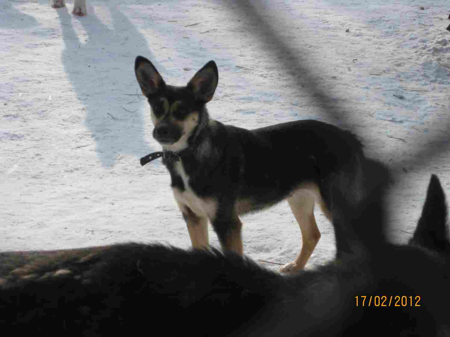 По ослику. Оказывается она в приюте уже год!!! Я ее никогда раньше не видела, считала, что в общема вальере для собак только все огромные. Эта же малявка спрокойно может у некоторых собак между лап пройти. Размер - 2,5 кошки. Все осложняется тем, что она - дикая. Дикой и останется, если будет сидеть в общем вальере. Там правит - стая. Человек - только как кормушка.