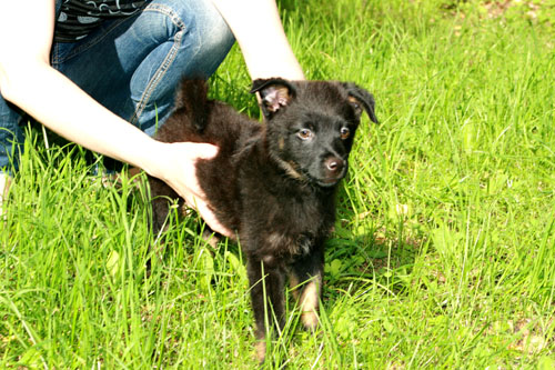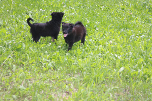 сегодня с утра гуляла с Шейлой по обычному маршруту. Шейла заныкалась в кусты и вышла оттуда с двумя маленькими щениками. им месяц полтора отсилы. видимо выкинули. эти малыши как прилипли к нам так и все. очень активные , мальчики черные с рыжими лапами. кидались под ноги лишь бы их забрали. полдня просидели у меня на балконе потом уехали на передержку. передержка платна 50 руб в день + корм. у одного мальчика проблемы с кожей, расчесы похожие на экзему. во вторник повезу его к Ане в Валенту, потом глистогонка, потом пристройство. малыши будут некрупными, ниже колена. если кто то может поделится глистогонкой, консервами, гамавитом, ошейниками буду очень благодарна. самой мне их не вытятуть я вся обвешена зверьем ( мопсиха, котенок, еще тайчика должны выловить во вторник + эти два пинянешки) прошу помощи.