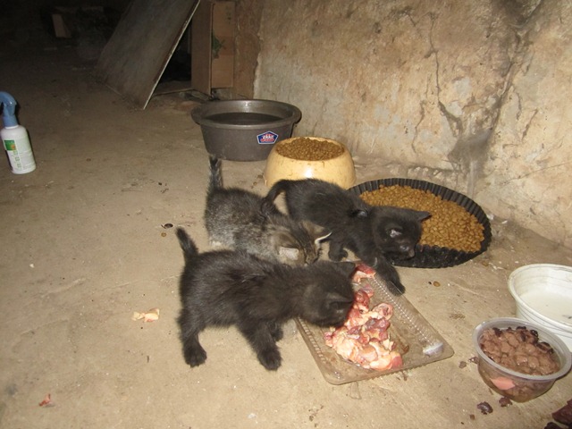 Дети пока живы. Обработала от блох. Поели мясо. Кошки вроде не обижают. Соседи молочко поставили. Не поленились. Не знаю как дальше. Фото закачаю вечером, тормозит инет.