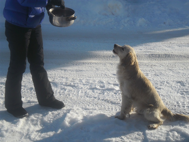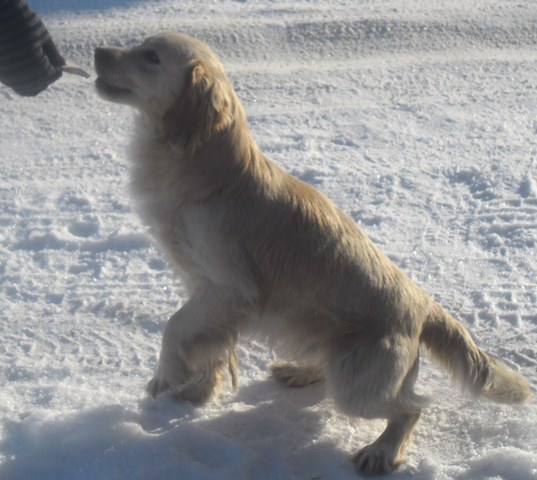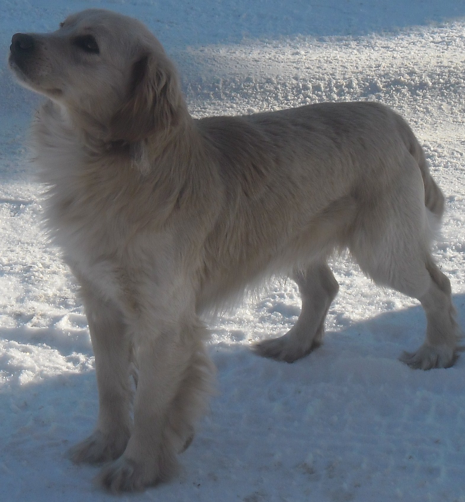 Не видно размеров собаки (кобеля), но (если достаточно крупный), то можно предположить, что это золотистый ретривер. Возможно даже не метис, а породный. НУЖНО ФОТО С ЧЕЛОВЕКОМ!!