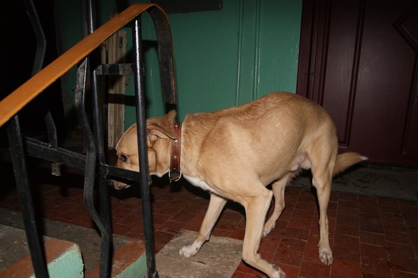 ребят уже 2 ой день в моём подъезде живёт собака. Кабель,худощавого телосложения,голоден,есть коричневый ошейник... ул.Добросельская, 185