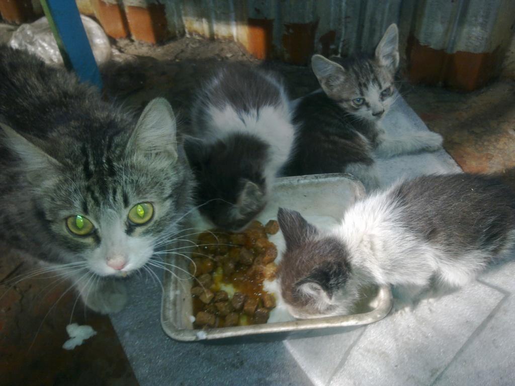 Сегодня по работе посещала производственную площадку предприятия. И там наткнулась на кошку с котятками. Буду конечно же искать им дом, но в идеале конечно нужна сначала передержка т.к. котят надо приводить в порядок. Сегодня дома слезно буду просить взять хотя бы одного на передержку, но могут и отказать.