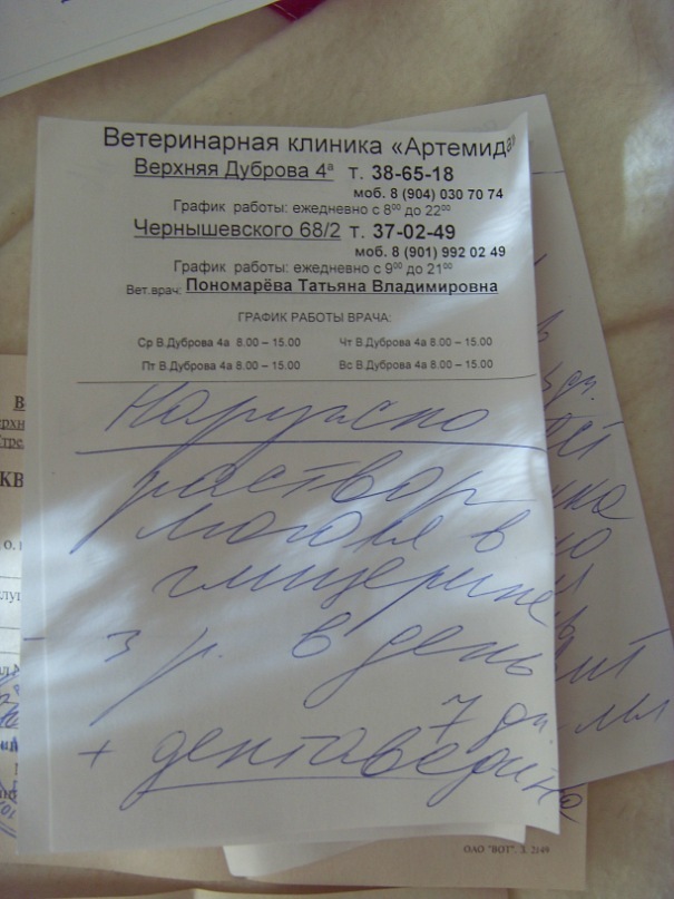 сегодня Марина собиралась поговорить с Аней из Валенты насчет лечения и свозить кота еще на прием к Зуевой