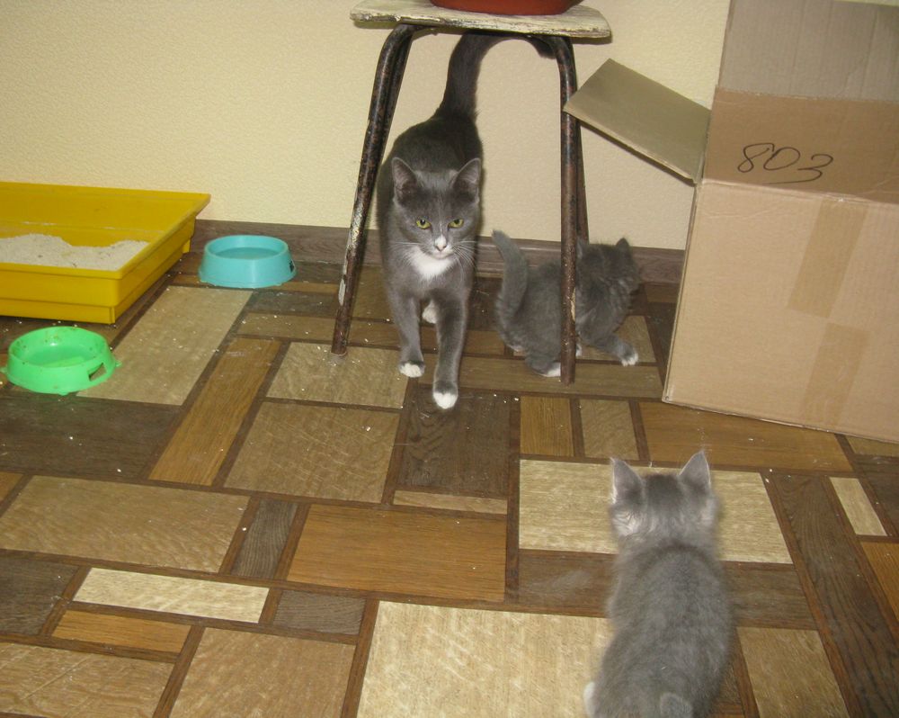 На работу нагло подбросили кошку с 5 котятами! Кошечка маленькая, лапочка, адекватная, очень ласковая и добрая, общительная, шёрстка блестящая, чистая, ухоженная, явно домашняя. Котятам 1,5 месяца, но с небольшим лишаём. У кошки не высветили лишай. Одного котёнка забрали сразу, остались 4. Очень жалко их в приют, так как умрут! Кошке тоже в приюте будет не сладко, заболеет, и дальнейшая судьба не известна.., а ведь она ручная, ласковая...