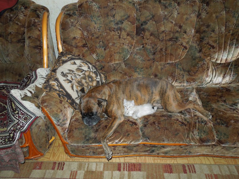 новые фото)) Кстати добралась наконец то до дома))) Киса супер,усы немного ломаются. Марин почему это?? Собака Груша похудела,как мамка попку котенку вылизывает. Создание очень мурчащее и баловное по возрасту. Хвост короче чем должен быть,или мне кажется? Вчера киса соходила в туалет за телик,за это ее закрыли в ванной где горшок стоит. В итоге киса плачет и Груша плачет. Типа выпустите бедное дитя)))