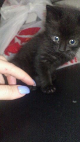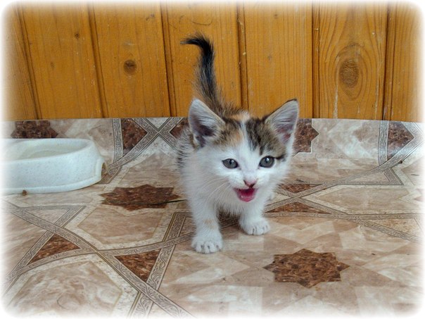 Кошка бездомная родила, а потом, когда котенок подрос, за шкирку к кормушке принесла. Лена себе на передержку забрала. Крошка нашла дом сразу.
