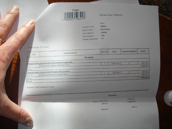 За прошлый прием в Москве не доплатили (они там забыли), оплата была в этот раз (чек-квитанция.)
