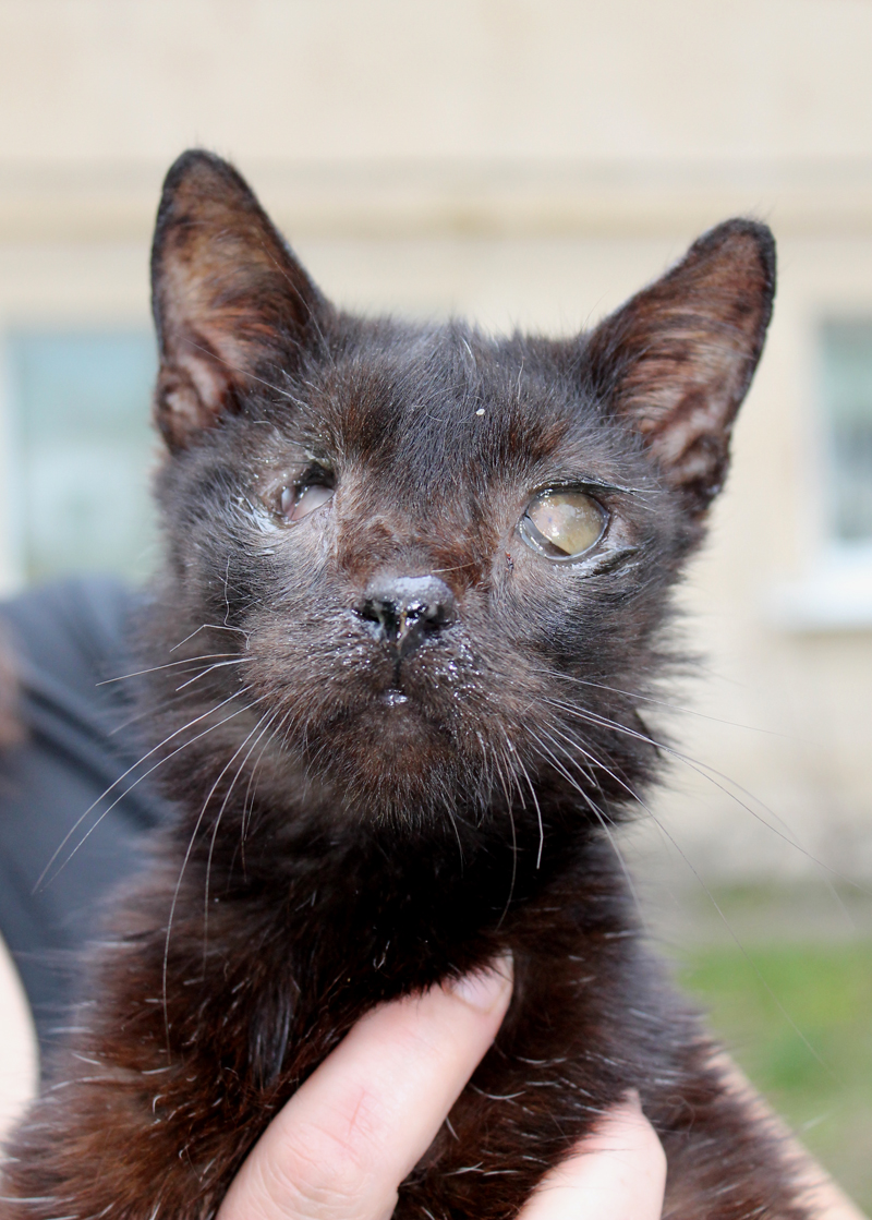 СРОЧНО!!!! истощенный котенок без глаз ждет нашей помощи!