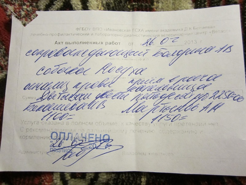 По деньга за 26.02.2013 (когда химию делали в Иваново):